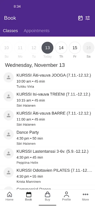 Selaa aikataulua & varaa paikkasi Fiiliksen tunneille & kursseille!