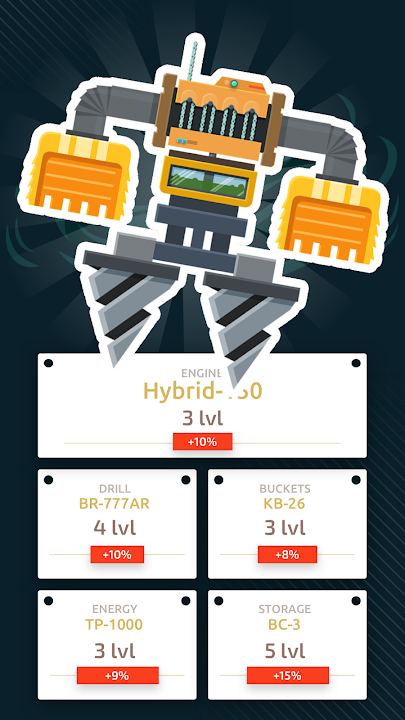 您可以在礦山中找到助推器和寶藏。您將從寶藏中獲取黃金和稀有礦物。使用助推器進行遊戲,以提高挖掘和挖掘速度。