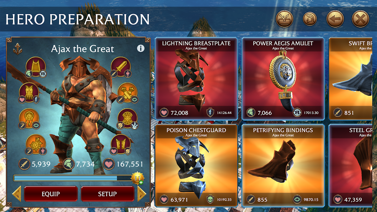 The main goal is to improve your gladiator heroes. Your gladiator heroes will fight better if you upgrade and equip them with epic weapons and armor for battle. The more battles are won with strategy, the more loot you earn for Olympus and your heroes.