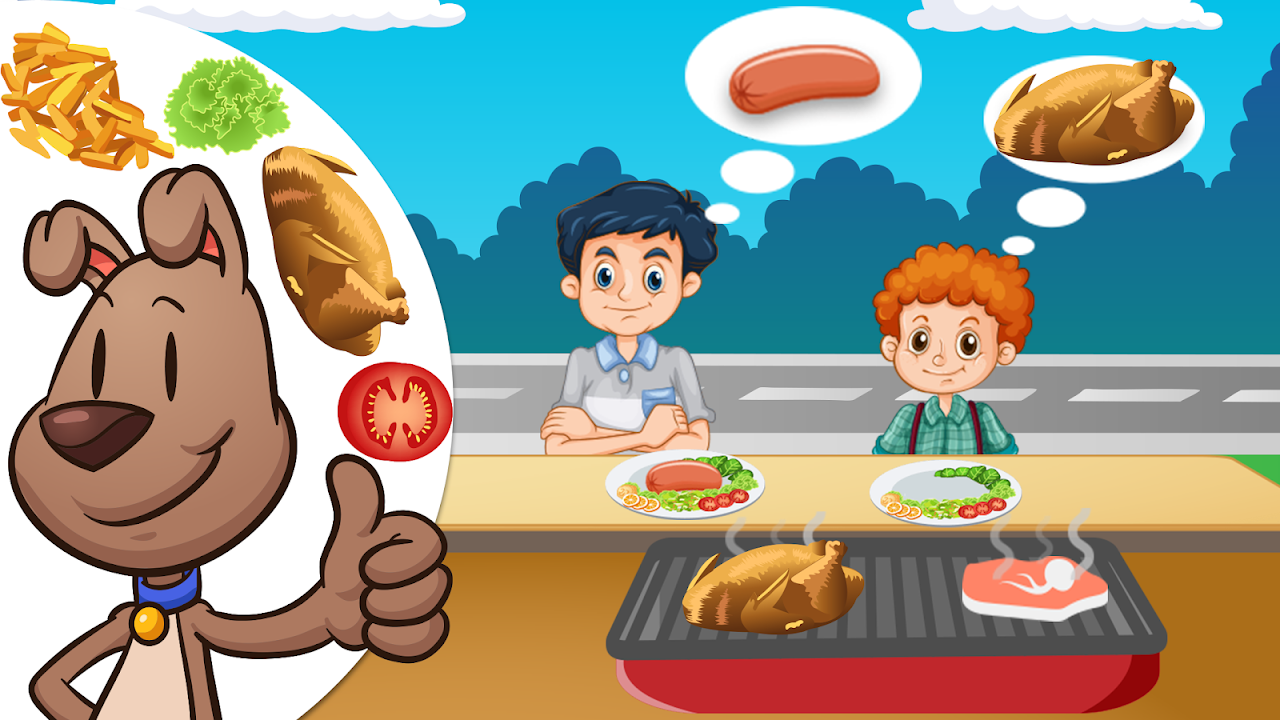 ✔烧烤:孩子学会了在火上制作肉类并喂养人们。