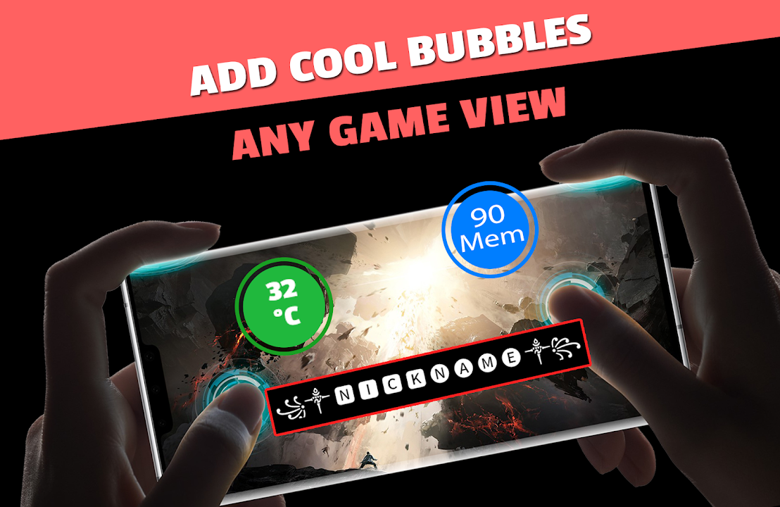 Gamer Bubble let's you put custom overlay bubbles on your game screen to get some usefull values of your device when you need to measure the gaming performance of your device. Also you can now generate cool nicknames and copy them to set as your nickname on the game you play!