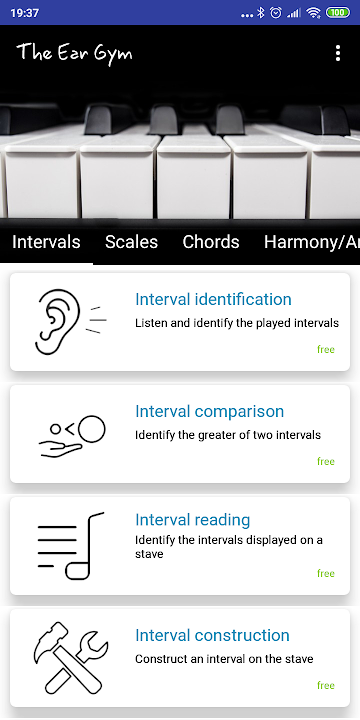 The Ear Gym -Ear Trainer is an efficient ear training app that lets the users learn about chords, harmony and intervals. This ear trainer offers the users music training and various exercises for intervals, scales, chords, perfect pitch, harmony, analysis etc..!