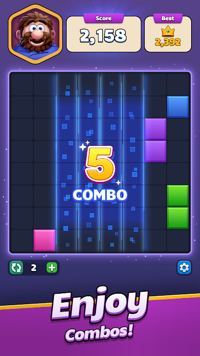 放鬆,訓練你的大腦並測試你的智商!將 Block Rush: Block Puzzle Game 放置在 8x8 棋盤中,並填充行、列或方塊以清除遊戲中的寶石塊。盡可能長時間地玩,不要用完空間來打破你的最高分!