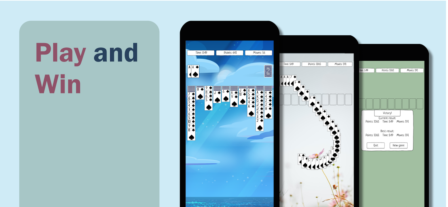 SIMPLE AND ERGONOMIC DESIGN - our spider solitaire is simple and ordinary. However all the elements are drawn with high quality and animations are smooth and pleasant. Cards with a large index are made especially for mobile phones.