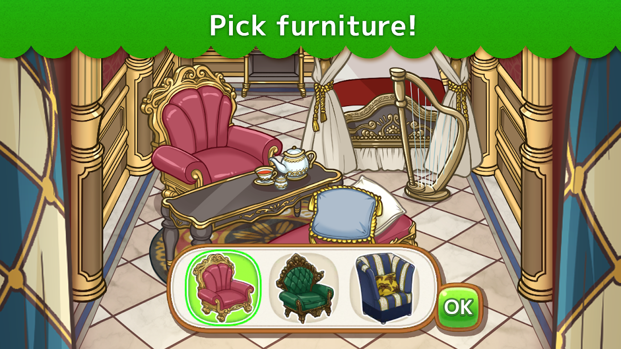 Complete puzzles to earn Stars which you expend on various tasks, such as cleaning rooms, getting new furniture, and talking to characters. Each type of furniture or decoration comes with options for you to select from to create your own unique rooms.