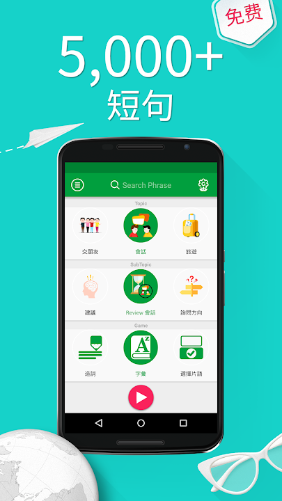 您現在可以利用學習英語應用程式探索超過5,000句用於簡短對話的英語短語,同時絕對享受純粹的樂趣!不論您是在英語國家度假的遊客,或者只是想說外語的人,這款應用程式都能夠幫助您快速、輕鬆又愉快地學習英文短語。