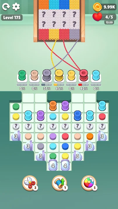 你的任务是仔细选择下方匹配的线轴,解开上方五彩缤纷的线结。运用你的观察力和策略思维,收集每根线头,完成独特的关卡。