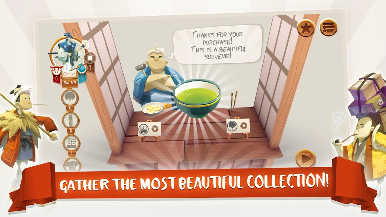 Developed by Funforge, original publisher of the boardgame, the video game offers an entirely new graphical experience! Whether you are a first-time fan, in love with Japan, or merely a curious newbie, the digital version allows each player to discover the celebrated Tokaido road in a new form.