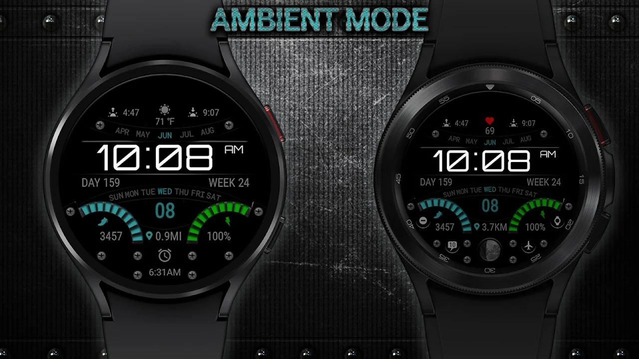 此錶盤可在運行 Wear OS 2.4 和 3 (API 28+) 的設備上使用,主要是三星 Galaxy Watch 4。