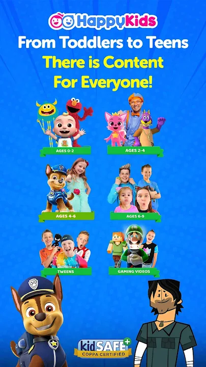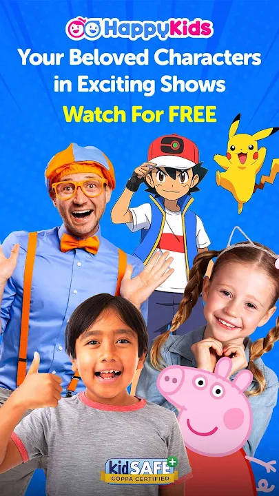 Join over 16 million parents who trust HappyKids for safe streaming for children of all ages! Dive into a treasure trove of 100,000+ free videos, featuring beloved family-friendly movies and shows like Cocomelon, Pokémon, Sesame Street, Blippi, Paw Patrol, Peppa Pig, LEGO, K-city Gaming, and more. With a variety of content designed for kids of all ages, there’s something here for everyone!