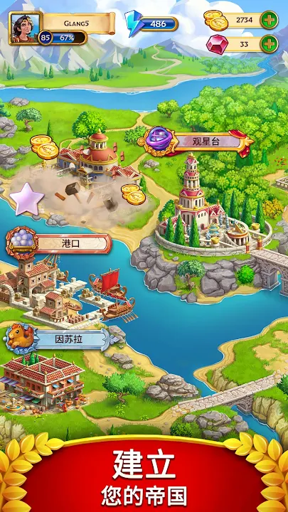 在这款的三消谜题冒险游戏中匹配宝石,建设罗马村落!