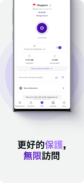 應用程式採用 WireGuard,這是業界最受歡迎且評價最高的協議,並針對速度和安全性進行了最佳化。