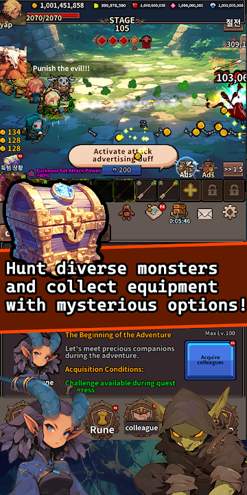 Simpler and more fun! Defeat monsters, acquire various equipment to level up your character, and take down bosses!!