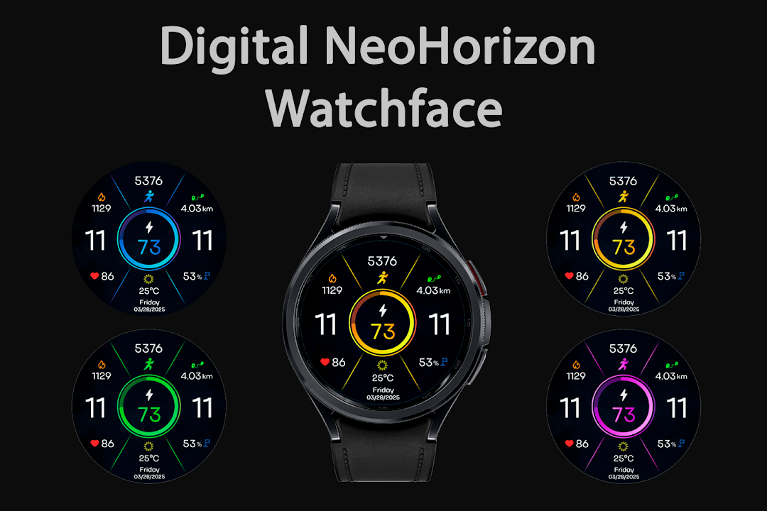 Neon minimalism with smart stats — watch face for Wear OS.