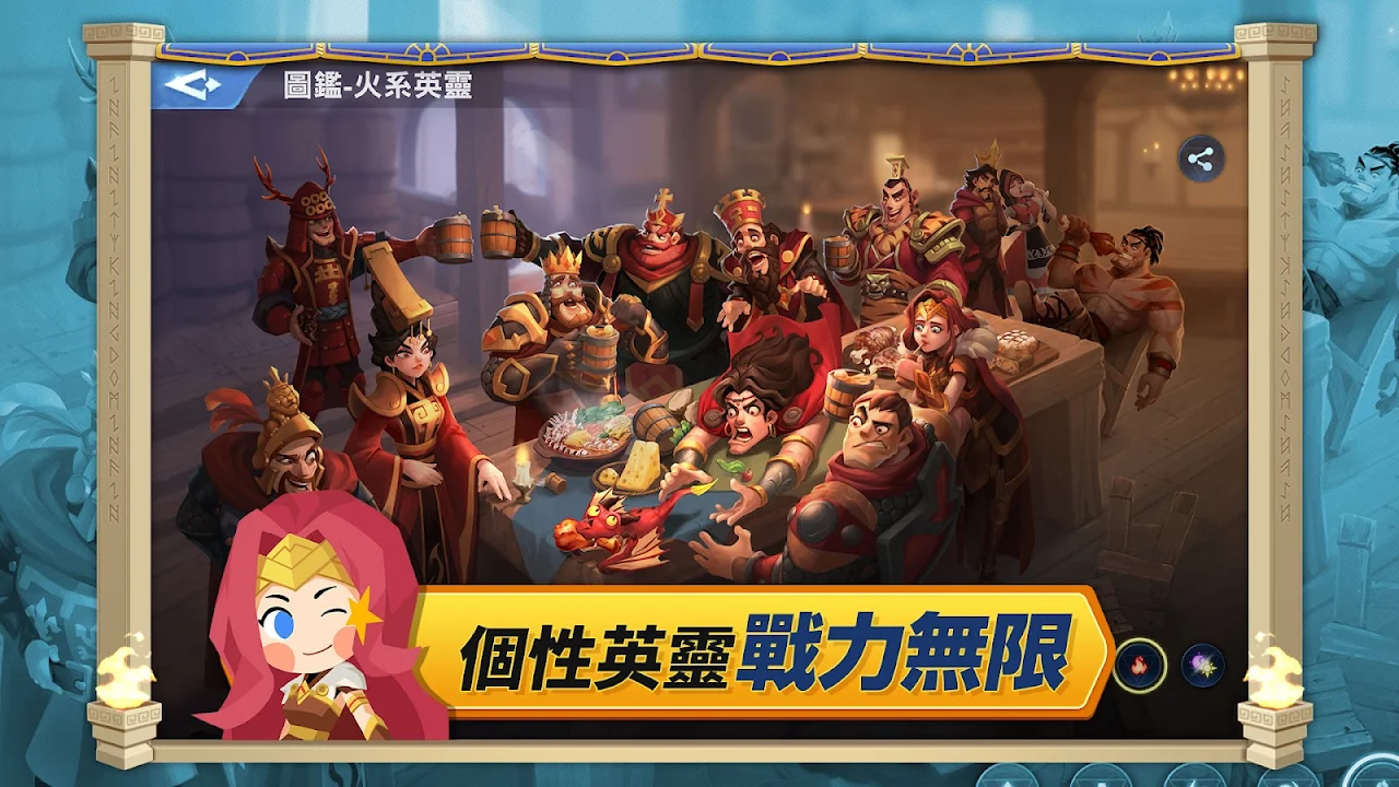 游戏内不仅有大家熟悉的筑城、占地、出兵攻打敌军的SLG玩法外,更能体验到融合Roguelike的大秘境,以及透过极具挑战性的时光之井副本,享受RPG式破关快感的同时,还能为你获得更多英灵养成奖励,为你的英灵增添高战力。玩法多样,让你上线永远不无聊!