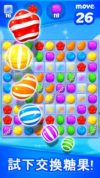 歡迎來到糖果女巫王國,一個夢幻的地方!你可以沉浸在可愛糖果的甜蜜中,用你的手指滑動並匹配3個或更多相同的糖果,抓住機會清除所有糖果與障礙物。快來加入遊戲成為糖果之王!