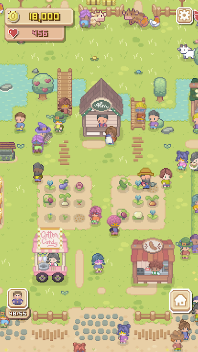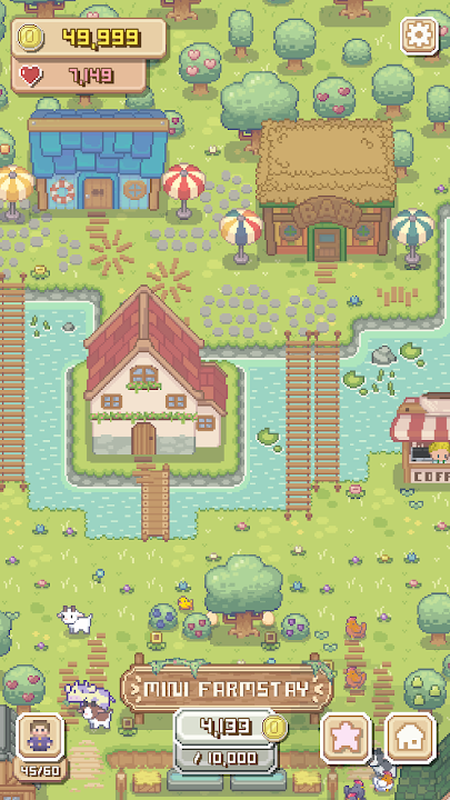 Build your own farmstay and relax with charming pixel art style. Easy to play—just tap to collect Hearts and attract customers to your farm. Start developing your farm, unlock more items, and add decorations.