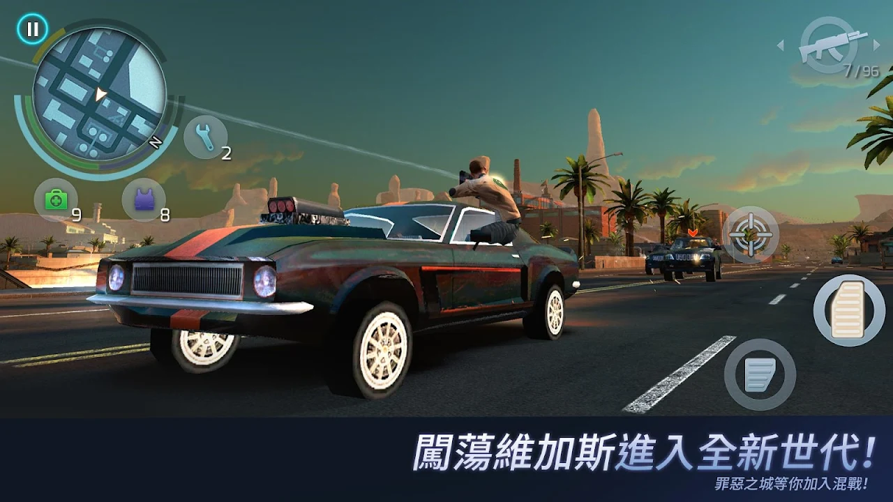 在開放世界中,駕駛各種車輛參加競速挑戰、收集多款武器與服飾,並在拉斯維加斯的街頭幹盡各種犯罪勾當!