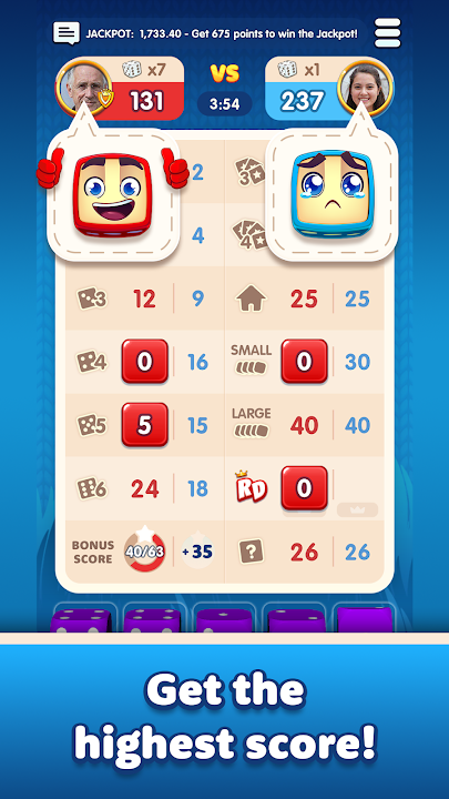 下载免费游戏 Royaldice,畅玩全新版本的 Yatzee。挑战你的朋友或来自世界各地的其他骰子游戏玩家!GamePoint 推出的多人社交游戏 Royaldice 包含以下特色: