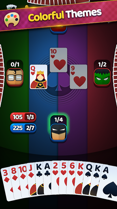 - Different Themes: Customize your Spades experience with a variety of themes. Change the look and feel of the game with different backgrounds, card designs, and more to create your perfect playing environment.