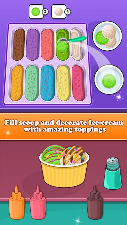 通过玩这款烹饪和餐厅管理游戏来获得减压视频。提升你的技能,并通过解锁更多配料和食品来赚取更多收入。畅玩各种迷你游戏,例如摆放水果、整理冰箱、分类巧克力和玩具,以及为潜在客户和现有顾客制作美味健康的冰沙。闯过越来越难的关卡,解锁更多配料和新馅料。销售顾客喜爱的巧克力、饼干、甜甜圈、棒棒糖和糖果。香蕉、蓝莓、泡泡糖、芒果、覆盆子、香草和草莓等口味的冰淇淋将吸引热爱甜点的顾客。