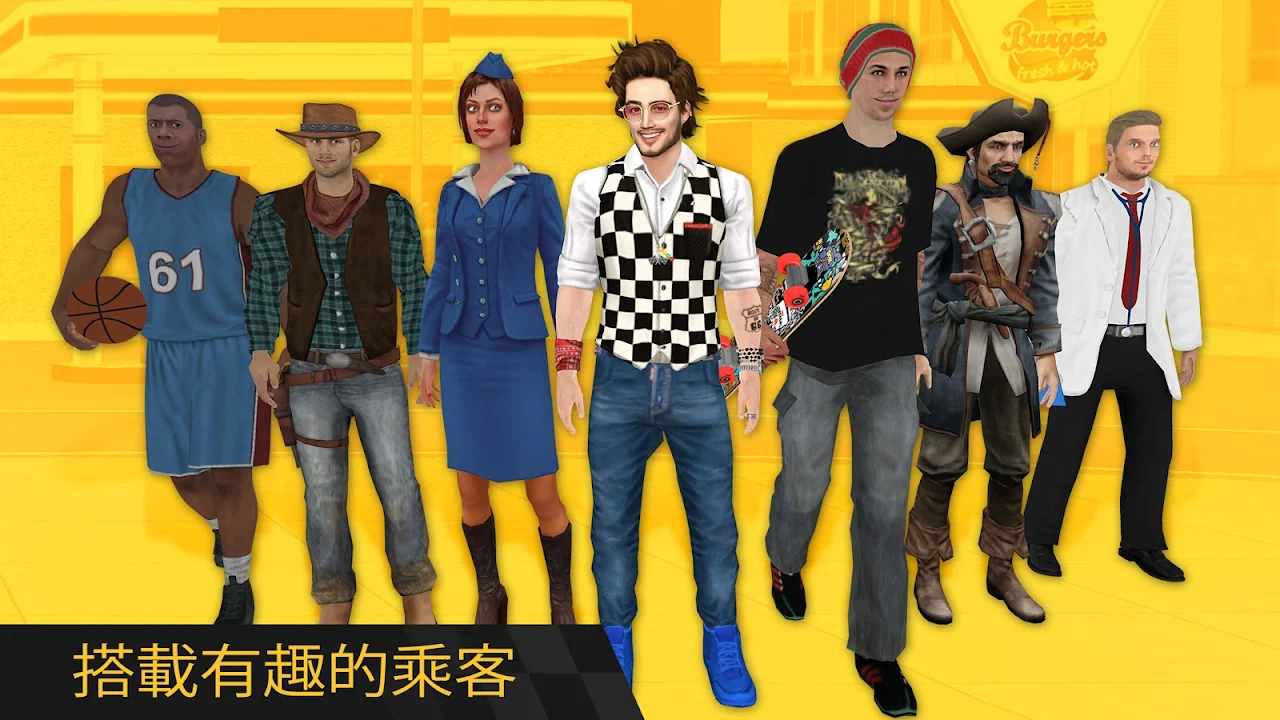 歡迎來感受出租車司機的真實生活。就像現實生活中一樣,你在遊戲中接送的每位乘客都具有真正獨特而豐富多彩的個性。你的工作是在盡可能短的時間內安全地將旅客從A點送到B點。他們會更喜歡你的服務還是更喜歡乘火車或公共汽車?