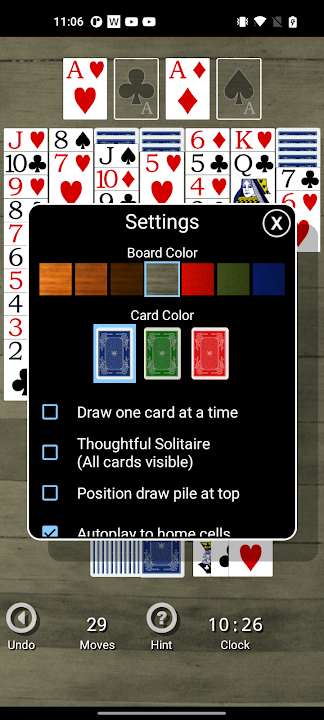 此外,我們的“Thoughtful Solitaire”設置讓您在玩遊戲時可以看到所有面朝下的紙牌,為您提供全新級別的策略和挑戰。 Solitaire Card Classic 採用時尚優雅的設計,提供既美觀又令人愉悅的視覺體驗。