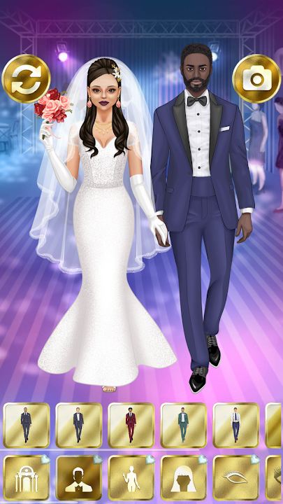 風格和化妝新娘,挑選新郎和婚禮背景!