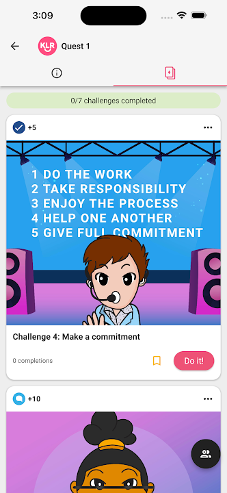相互競爭,賺取積分,即可解鎖應用程式內徽章和獎勵,例如商品、免費 1-1 輔導和獨家邀請。透過追蹤進度的排行榜和問答討論板,KLR 應用程式將激發您的行動並增加您在社交媒體上取得成功的機會。