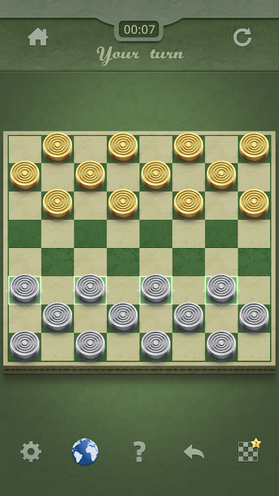 - 5 different rules (International draughts, English draughts / American checkers, Russian draughts, Turkish draughts and Spanish draughts) so you can play with your local rule. You can even customize the rules if you want to play your own.