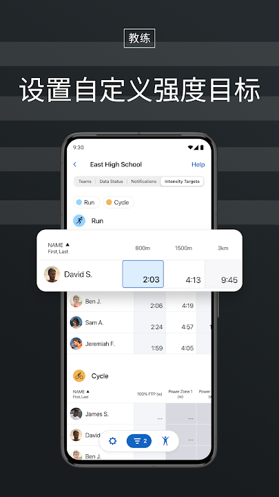 • 根据自定义强度目标向运动员发送个性化训练计划