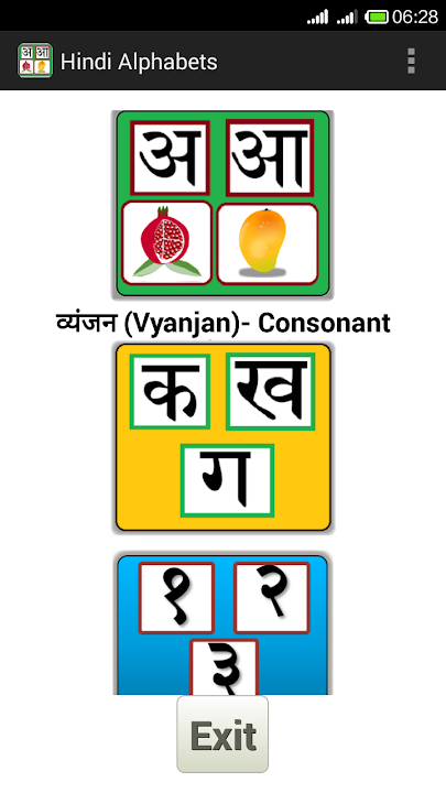 -Implementation of Hindi Vowels (Swar) and Consonants (Vyanjan) with pictures in this app.