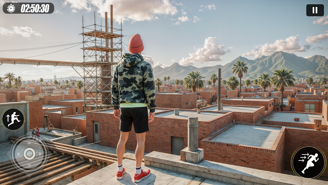 Enjoy jumping climbing and running with going up rooftop and parkour games