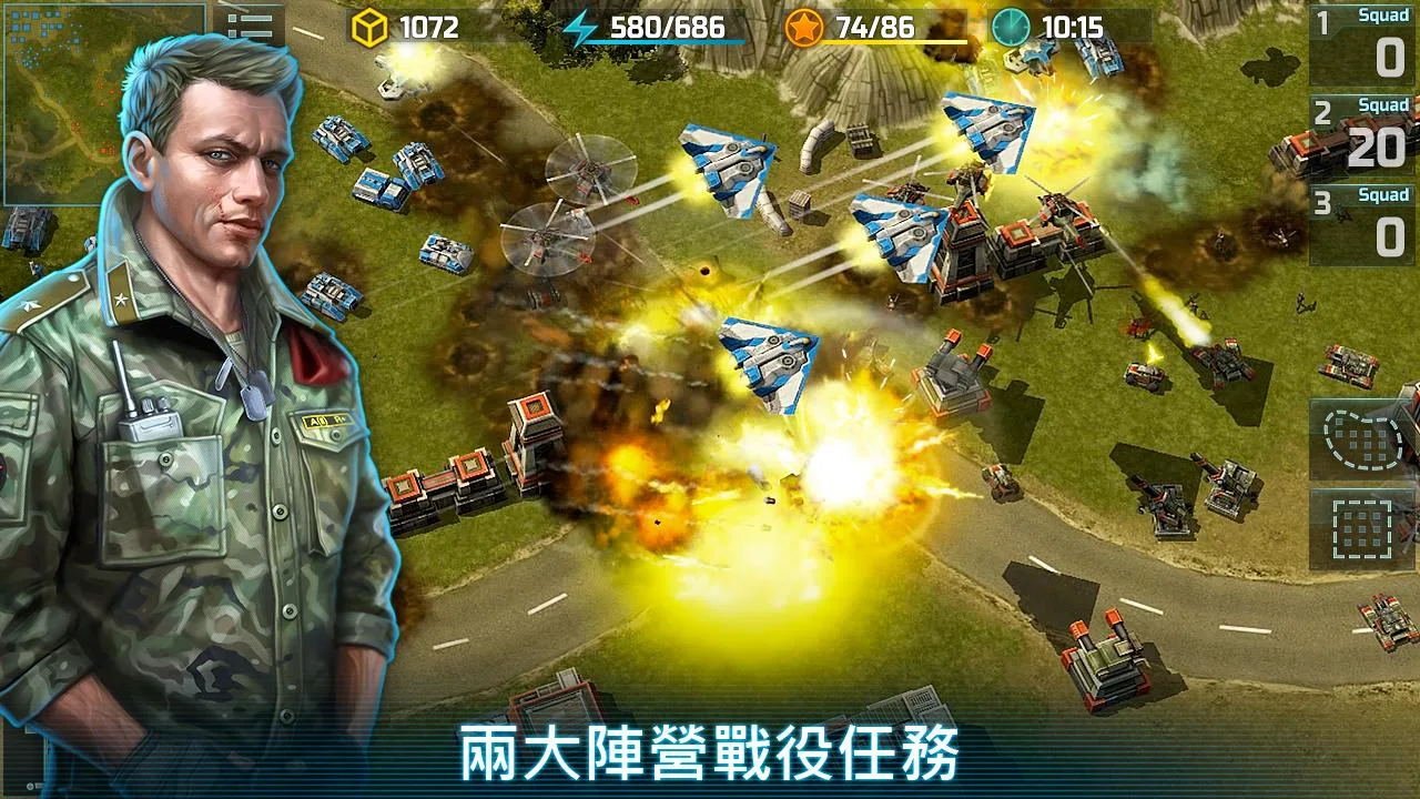 這款現代即時策略線上戰爭遊戲給你身為一名將領的體驗。建設你的基地,生產步兵、戰車、戰機和船艦部隊,然後指揮你的部隊擊潰對手。參加世界大戰使用超級武器解放你的力量!加入戰隊,和好友們一起對抗其他戰隊,爭奪各個地區的控制權。享受橫掃千軍的快感!
