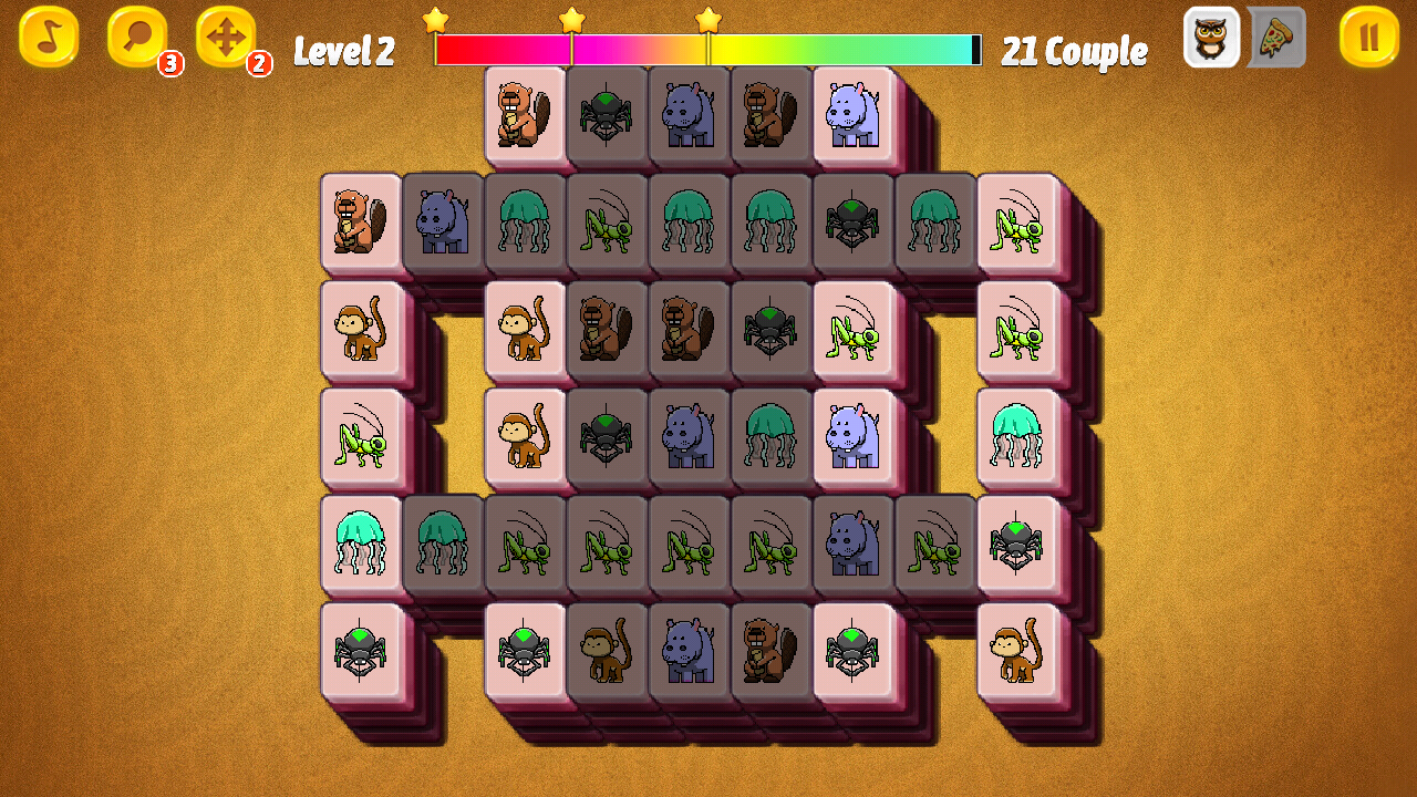 Mahjong Animal Solitaire有100多個級別,從易到難。這種遊戲模式不僅可以幫助新玩家捕捉遊戲玩法,還可以為熟悉經典遊戲玩法的玩家帶來新的挑戰。