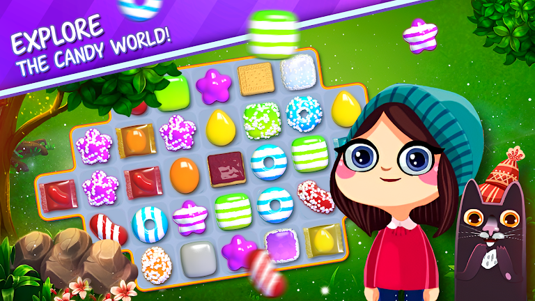 🍬 拥有数百个关卡和可爱英雄的快乐游戏玩法。在绚丽的糖果世界中,用软糖和其他糖果玩这个匹配游戏。