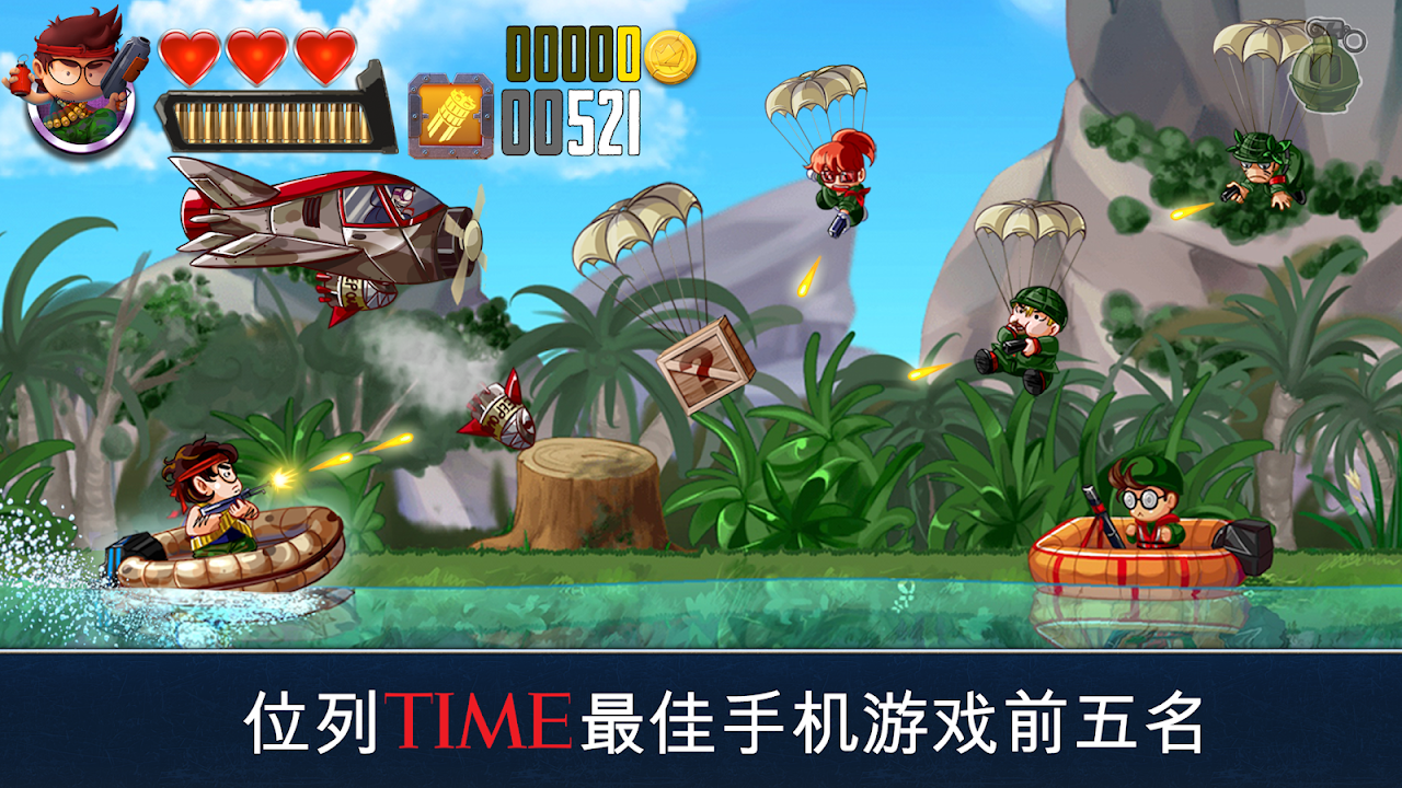 生存一队士兵,伞兵,火箭发射器和敌方潜艇,在你卸下所有炮弹的同时躲避一阵子弹。在你的奔跑中,获得能量提升以增加你的火力并收集硬币来升级你的枪支,船只和统计数据。