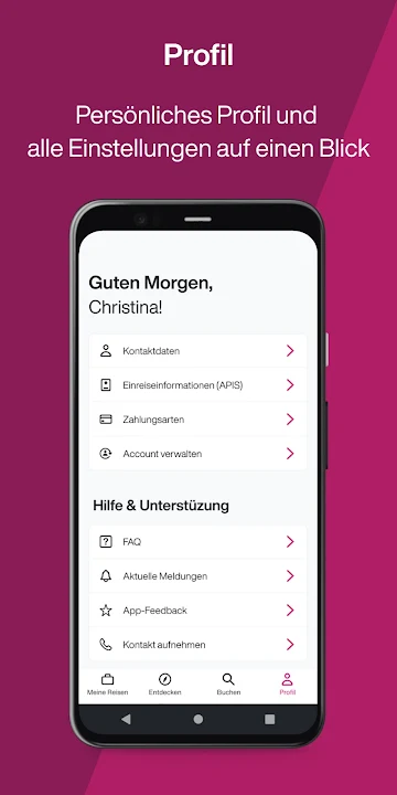 借助欧洲之翼应用程序,您的旅程就在您的口袋里:快速轻松地查看所有重要功能和信息。