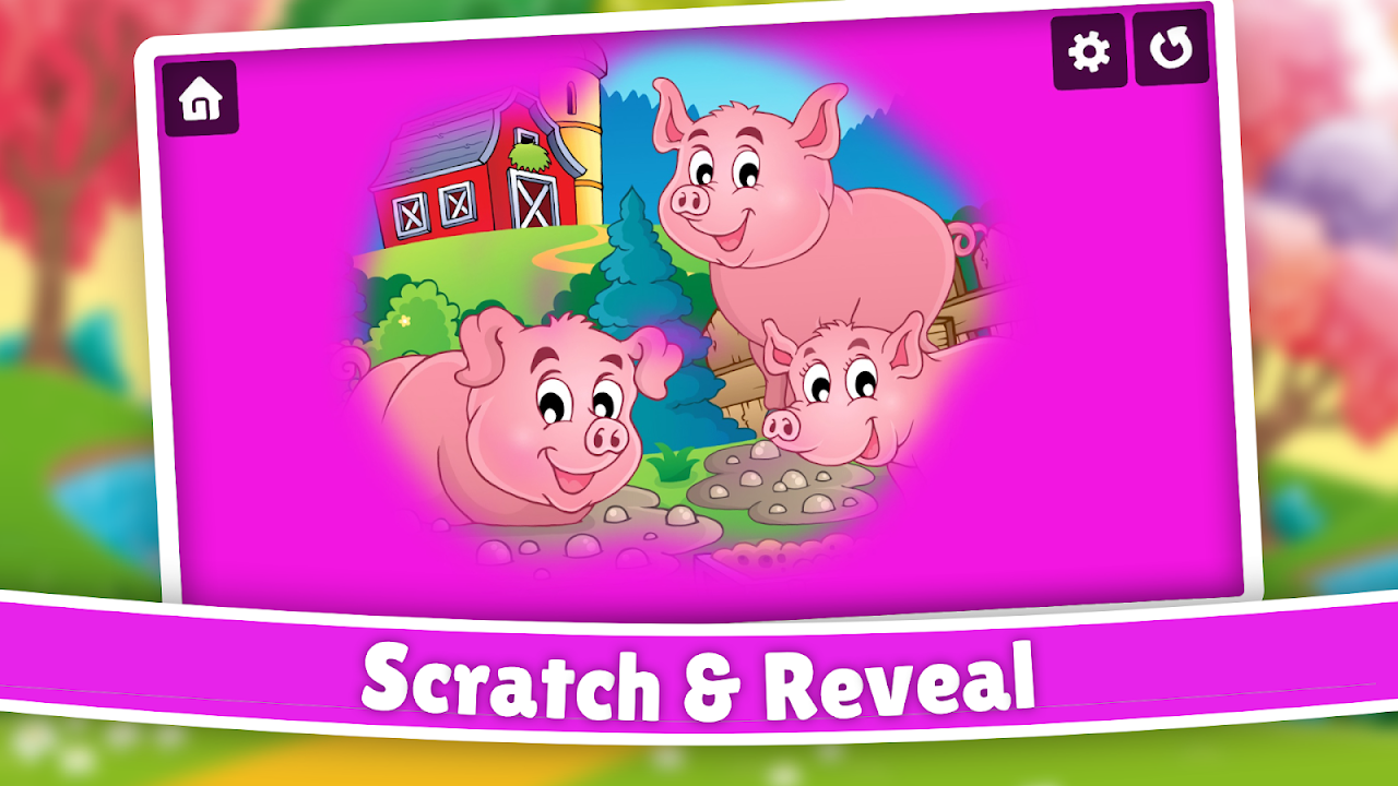 Fun farm animal scratch and coloring game for kids and toddlers.