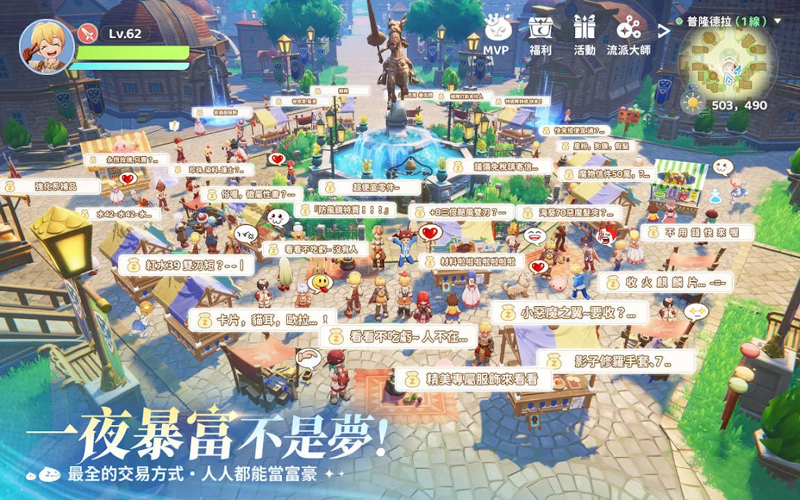 - 一夜暴富不是梦,爽赚差价变富豪!稀有装备道具炒出天价,还能与玩家讨价还价,即时互动超有趣,体验从小贩逆袭成大亨!