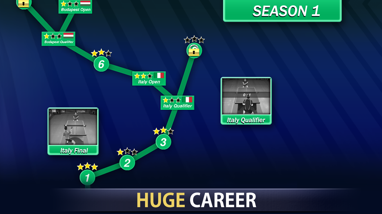 Progress through the stages and become a Table Tennis Champion!