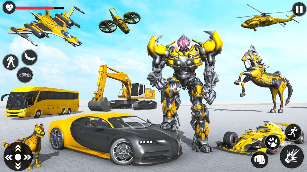 在這款瘋狂的機器人遊戲中,您將控制強大的超級機器人並參與激烈的機器人汽車遊戲。駕駛機器人汽車並參與高速追逐,感受飛行汽車遊戲的快感。釋放您的汽車機器人領域大師的全部潛力並主宰機器人改造宇宙。