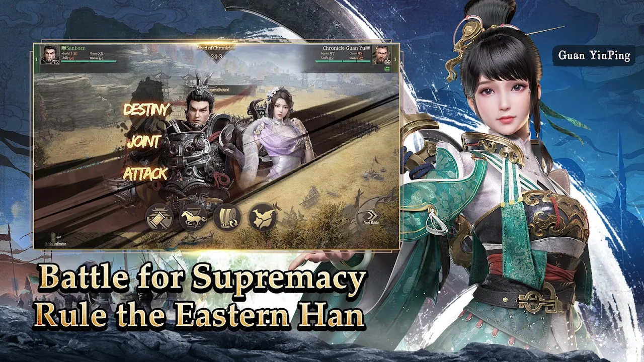 Switch seamlessly between landscape and portrait modes. Whether you're using one hand or two, dominate the Three Kingdoms your way!