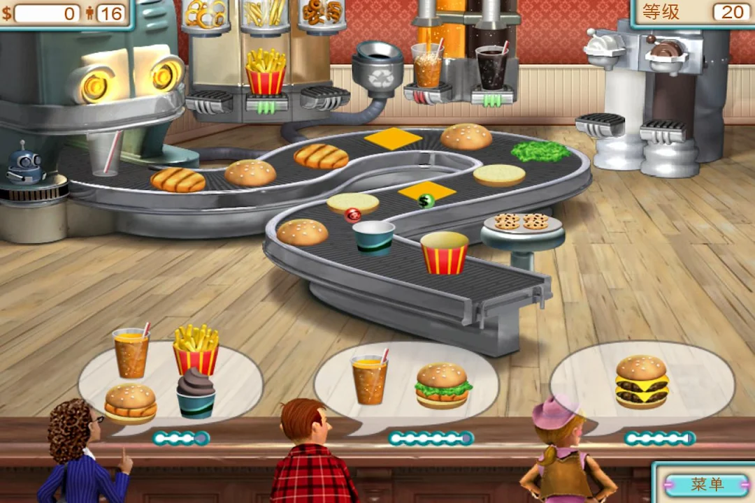 • 挑战模式 – 玩一分钟闪电快速回合游戏 – 但千万别丢掉顾客,否则游戏就结束啦!