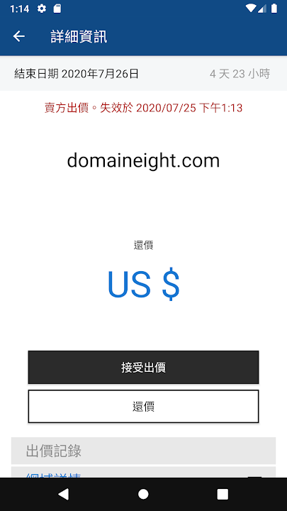 • 查看各網域的拍賣記錄,包括競標者人數及其競標金額。