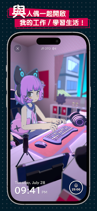 放下手機,在喜愛的空間、美麗的音樂,與專屬的虛擬人偶一起,專心工作/學習!