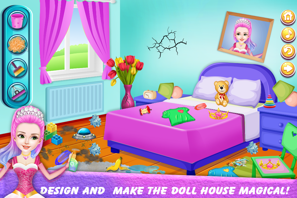 这个可爱的魔法娃娃屋是梦想中的房子装饰和清理的家庭小帮手。让我们为梦想中的房屋清洁做一个清单。像专业的清洁服务一样保持清洁。你会喜欢打扫你梦想中的房子,并喜欢训练你的其他家庭成员成为家庭小帮手梦想中的房子清洁工。在您开始逐个房间之前,请欣赏一些活泼的音乐。现在收拾残局。让我们对书籍、杂志、旧衣服、报纸、家具、会说话的玩具、地毯和一些旧电脑进行清洁和除尘。使用一些吸尘器、真空吸尘器、扫地、拖把、处理地板、家具清新以进行一些拖地和一些水疗打蜡。现在进入厨房,擦拭台面、橱柜、冰箱、微波炉、洗碗机等电器,并擦拭炉顶。扫地和拖地。现在,当您进入浴室时,请在吸尘前移除地毯、废纸篓。移除浴缸和淋浴间的所有物品。用温水放置浴垫、清洁浴缸或淋浴墙。现在用除马桶、淋浴间、浴缸和镜子外的通用清洁剂进行清理和喷洒。专注于浴垫、擦洗浴缸、淋浴墙和门。将瓷砖和清洁剂涂在浴缸地板上并擦洗。清理淋浴架和肥皂盘。杀死马桶上的细菌并用马桶清洁剂清洗。冲洗水槽和抹布。擦拭梳妆台台面。擦拭橱柜正面。更换地毯、浴垫和垃圾桶。