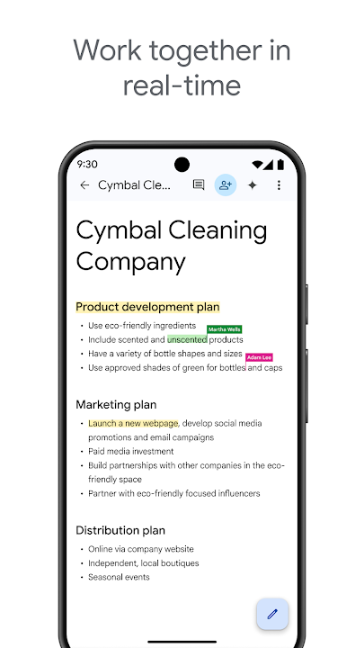 Create, edit, and collaborate with others on documents from your Android phone or tablet with the Google Docs app.