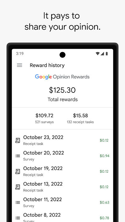 通过 Google 意见奖励(Google 调查团队创建的应用程序)回答快速调查并赚取 Google Play 积分。