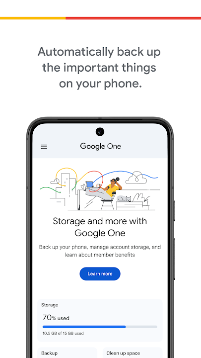 The Google One app lets you automatically back up your phone and manage your Google cloud storage.